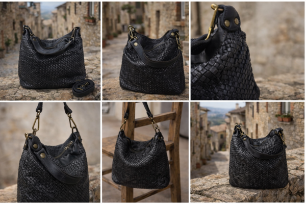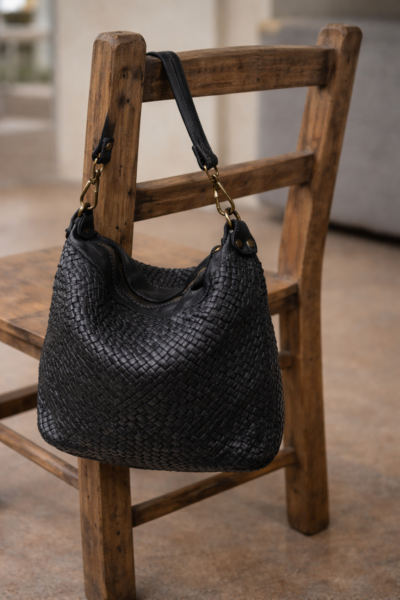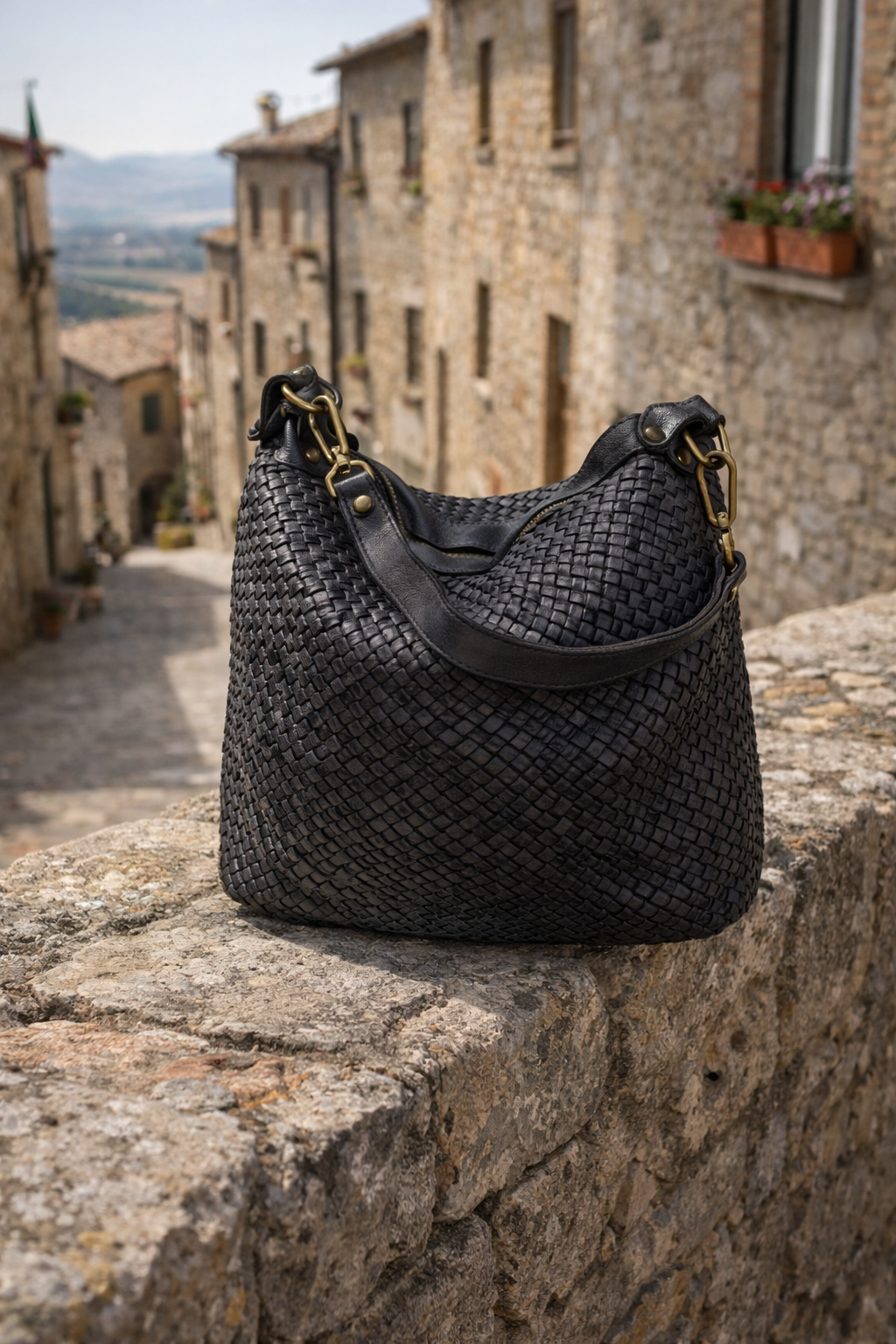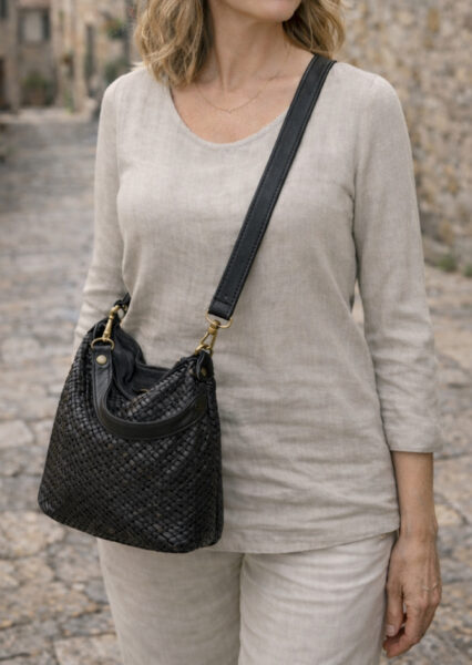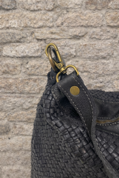 Diese hochwertige Damen-Schultertasche aus handschuhweichem Vollrindleder ist lässig sportlich.. Das geflochtene Leder (Waschleder) im Vintage Design und in der Farbe schwarz macht die Tasche zu einem stilvollen Begleiter für Alltag und besondere Anlässe. Sie bietet großzügigen Stauraum und kann flexibel als Umhängetasche (crossover) oder über der Schulter getragen werden.