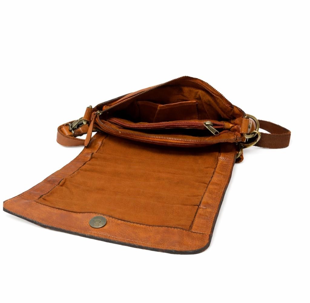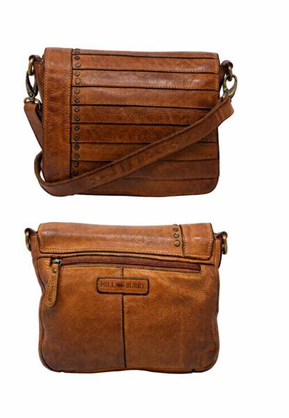 Hill-Burry Damen-Umhängetasche/ Schultertasche Shabby Look cognac