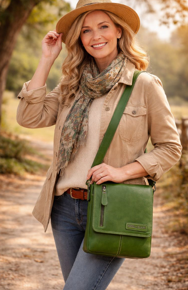 Hill-Burry – Rustikale grüne Umhängetasche aus Bioleder