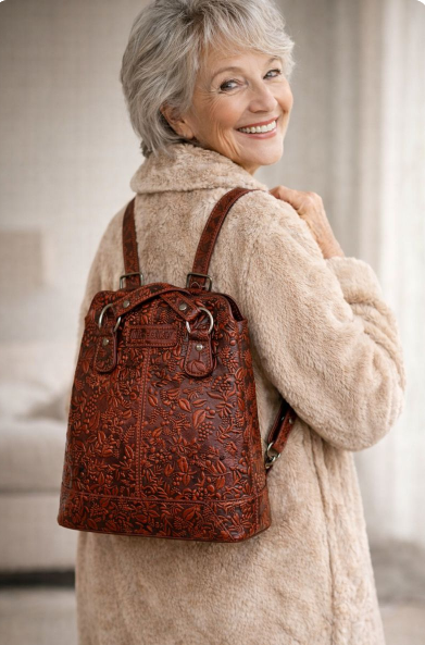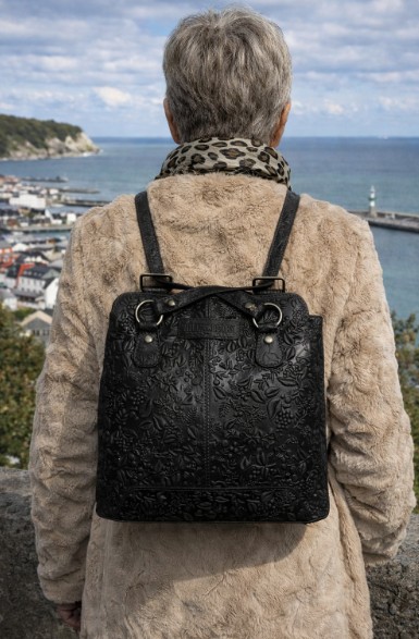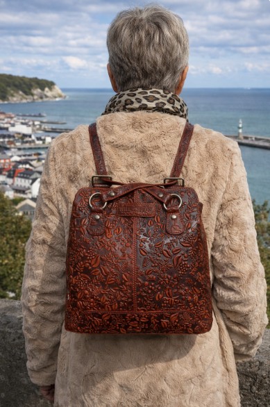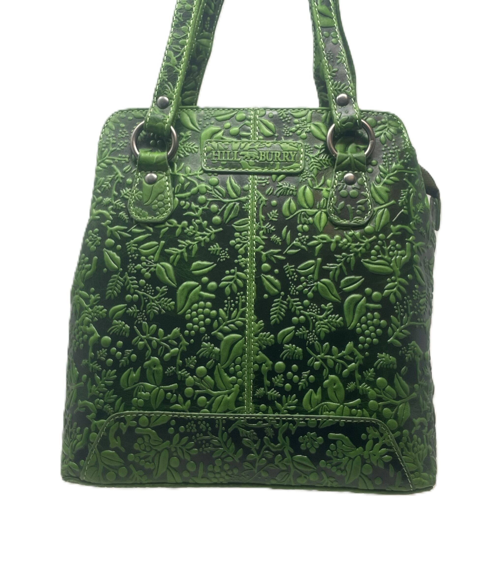 Hill-Burry rustikaler Rucksack und Schultertasche – geprägtes Leder: in grün, braun, schwarz und rot