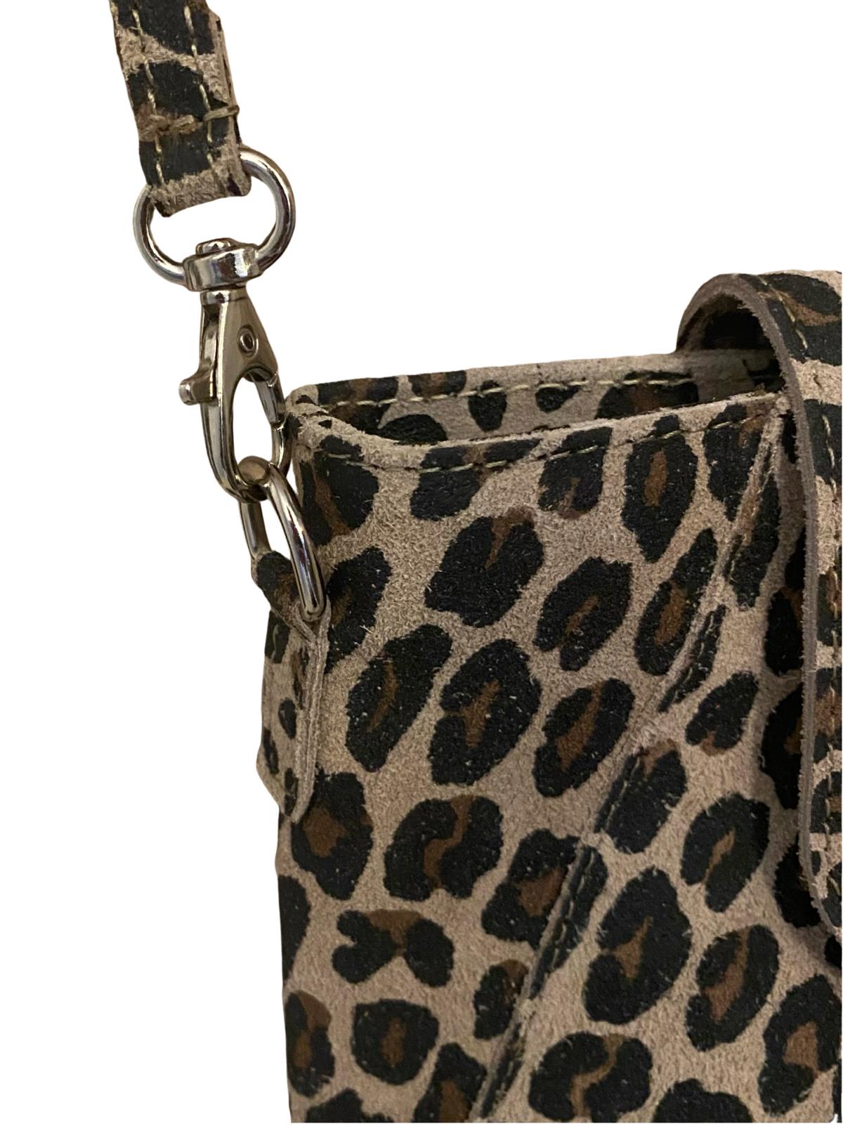 Diese edle Umhängetasche aus hochwertigem italienischem Leder verbindet modernes Design mit praktischem Komfort. Das trendige Leopardenmuster macht sie zum absoluten Hingucker.