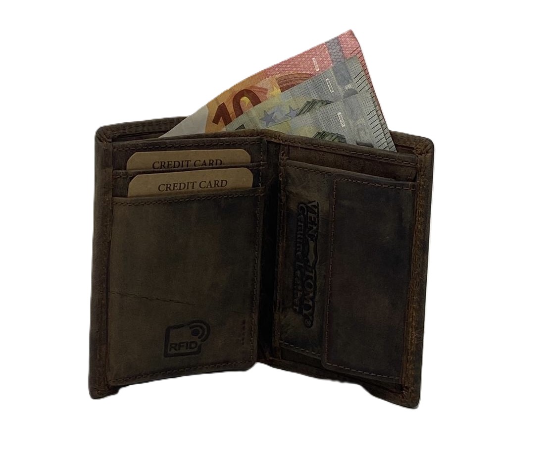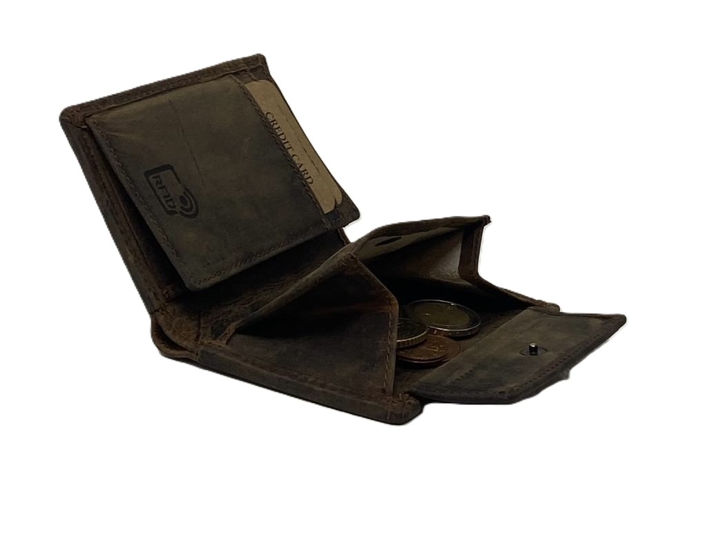 Kombibörse aus Hunter-Vollrindleder mit RFID-Schutz | Braun
