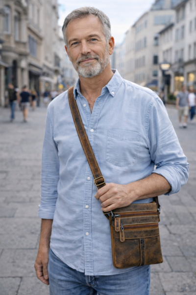 Diese klassische Tasche vereint robustes Design mit praktischer Alltagstauglichkeit. Gefertigt aus hochwertigem Vollrindleder.