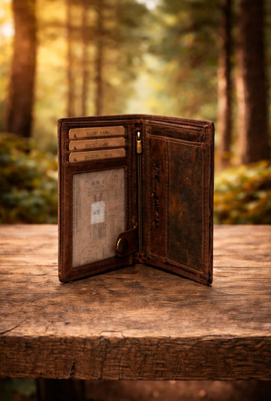 Rustikal und handlich: die alltagstaugliche Kombibörse aus Hunter-Vollrindleder