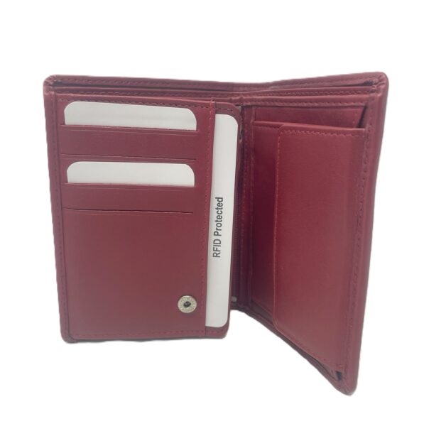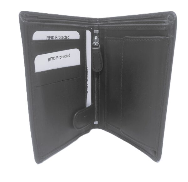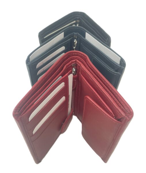 Mit 6 Kreditkartenfächern ( einem Sichtfenster), 2 Geldscheinfächern sowie einem großen Münzfach bietet die Börse reichlich Platz für Karten, Bargeld und Belege. Die RFID-Blockierung schützt Ihre Karten zuverlässig vor unbefugtem Auslesen.
