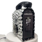 Telefontasche mit Hörer als Tragegriff weiß mit schwarzen Punkten